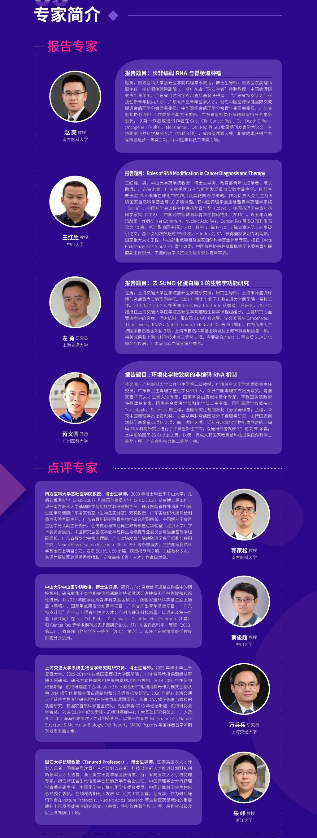 由ac米兰官网中文网站举办的2021年广东省研究生论坛——非编码RNA与人类疾病分论坛拟于10月16日召开。论坛组委会邀请了广州医科大学蒋义国教授,南方医科大学赵亮教授、郭家松教授,中山大学王红胜教授、蔡俊超教授,上海交通大学左勇研究员、万兵兵研究员,浙江大学朱峰教授等八名国内相关领域知名学者做学术报告,并对研究生汇报进行点评、评优。本论坛旨在为研究生提供一个展示创新成果和交流学习的平台,诚邀各位老师和同学参与和线上观看!