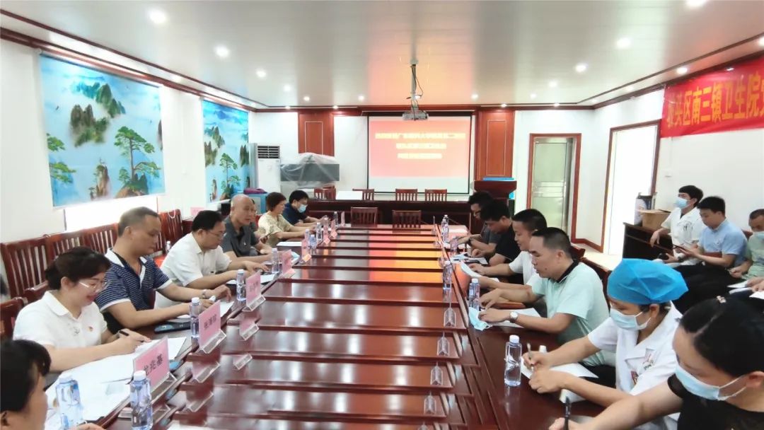 附二院领导班子一行人到坡头区南三镇卫生院现场参观并指导工作,进一步了解坡头区南三镇卫生院的医院运营、医疗护理质量管理、人员构成、基础设施等情况。根据实地参观,随后召开了座谈会,附二院领导就教学培训、信息技术、管理整合等专业帮扶及医院发展提出期望和建议。