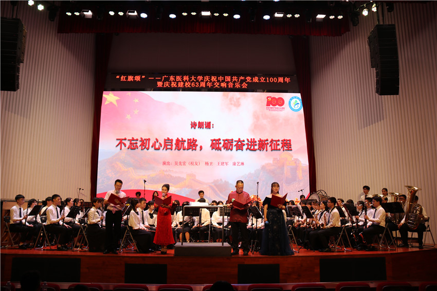 由校友吴先宏、王建军、杨卫、康艺林共同朗诵的《不忘初心启航路、砥砺奋进新征程》向广大师生展示了ac米兰波澜壮阔的63年征程路,一副副一帧帧不能忘却的画卷,引领着我们前行。