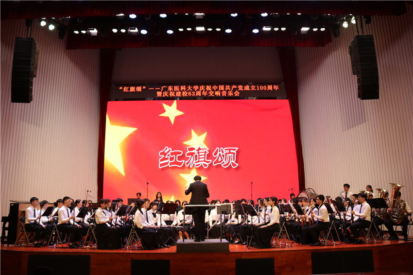 为庆祝中国共产党成立100周年,深入开展党史学习教育,传承红色基因,发扬红色传统,坚定文化自信,积极引导广大师生红心永向党、建功新时代。5月23日,ac米兰官网中文网站迎来了建校63周年之际,由中共ac米兰官网中文网站党委宣传部、中共ac米兰官网中文网站人文与管理学院委员会主办的“红旗颂—庆祝中国共产党成立100周年暨庆祝建校63周年交响音乐会”在图书馆报告厅倾情奏响。学校党委副书记罗辉,党委常委、党委组织部部长谭平,党委常委吴征宇,校友总会会长吴先宏,及各单位各部门负责人和广大师生1000余人共同观看了演出。