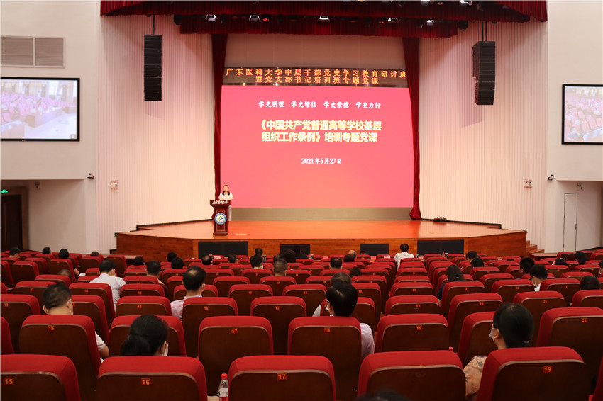 5月27日下午,学校中层干部党史学习教育研讨班暨党支部书记培训班专题党课第三讲开讲。学校党委副书记罗辉受邀讲授专题党课。学校领导,学校党史学习教育领导小组成员,全体中层干部,党支部书记,辅导员,师生党员代表参加专题党课学习。专题党课通过视频方式两校区直播。学校党委常委、组织部部长谭平同志主持专题党课。
