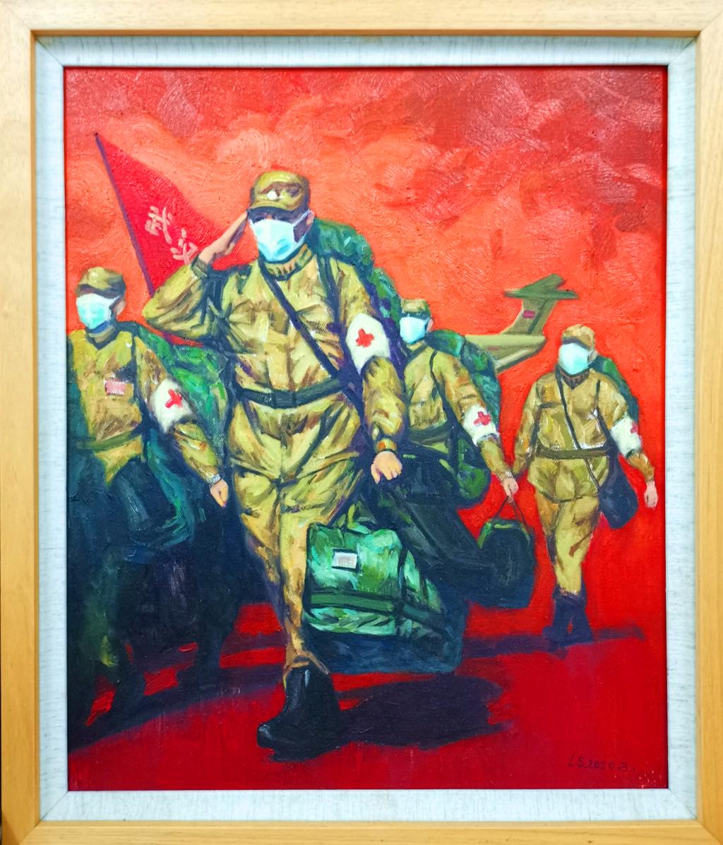 有的通过绘画作品表现了全国人民在中国共产党坚强有力领导下,在防控新冠疫情战争中万众一心夺取胜利的信心和决心。