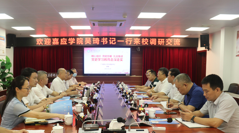6月24日下午,嘉应学院党委书记吴琦一行七人来校调研。调研座谈会上,ac米兰党委书记、校长卢景辉向吴琦一行表示了热烈欢迎,并介绍了学校坚持以学生发展为中心、以学科建设为核心、以人才强校为要务、以社会服务为己任、以党的领导为根本的办学理念在学校建设发展过程中的作用。卢景辉表示,政治建设是统领学校党的建设的前提基础和保证,加强党的领导和党的建设是做好一切工作的前提。2016年以来,学校坚持一年一个主题,针对性解决发展瓶颈问题。学校党委坚持目标导向、问题导向、结果导向,先后开展了“四问四做起”“四比四提升”“四强四争当”“三抓实三增强”“四对标三争先”“三强化三过硬”主题党建活动,有力引领学校事业发展。