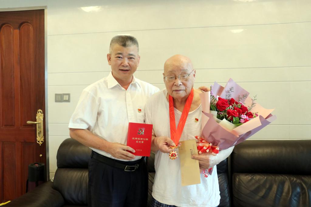 据悉,全校共有49名老党员获颁纪念章。接下去,学校将通过上门慰问、座谈会、庆祝中国共产党成立100周年暨表彰大会等多种方式,发放“光荣在党50年”纪念章,广泛宣传中国共产党百年奋斗的光辉历程、取得的伟大成就、铸就的伟大精神,引导全校师生在新时代新征程中奋勇争先建功立业。学校党委办公室、党委组织部、离退休工作处、党委宣传部有关人员一同走访。(文/庄光杰 图/谭丽波 审/冯锦山)