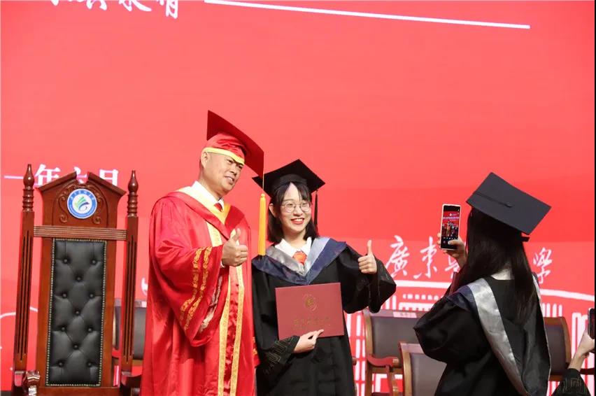 疫情防控需要,跟往年相比,今年少了握手环节,校长说:“学生才是今天的主角”。他把C位留给学生,贴心地弯腰跟学生合影。