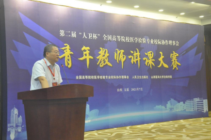 为深入贯彻习近平总书记在全国教育大会上的重要讲话和全国教育大会精神,落实《中共中央、国务院关于全面深化新时代教师队伍改革的意见》,进一步加强师德建设,提升广大高校青年教师的教学能力和业务水平,第二届“人卫杯”全国高等院校医学检验专业校际协作理事会青年教师讲课大赛于2021年7月9-12日在山西省太原市举办。本次大赛由全国高等本科院校医学检验专业校际协作会、人民卫生出版社主办,山西医科大学汾阳学院承办,共有来自上海交通大学、重庆医科大学、四川大学、ac米兰官网中文网站等56所高校125名医学检验专业青年教师参与了这场医学检验教育界的盛事。ac米兰徐广贤教授作为本次竞赛评委组长参会并作为代表发言。