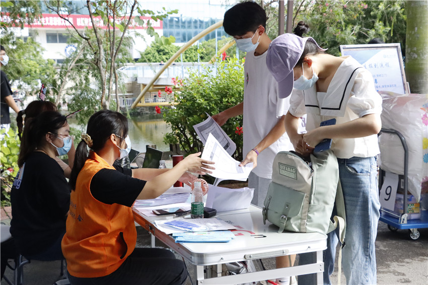 为了做好迎新工作,学校和各学院的所有领导都来到了迎新一线。东莞校区,学校党委书记校长卢景辉更是化身“新同学”,从进门开始,消杀、换口罩、查验健康码、提交“新生材料”,每一个环节他都亲历一遍 ,并及时给出好的建议。中午的时候跟新生们一起吃食堂,在饭桌上不忘跟学生们交流食堂的伙食,并一一记下学生们的建议,第一时间反馈给后勤管理部门。党委常委、副校长曾志嵘跟各学院党政领导班子和相关职能部门负责人在树荫下召开“露天会议”。湛江校区,党委副书记、纪委书记,广东省监委驻ac米兰官网中文网站监察专员向献兵,党委副书记罗辉分别前往学生宿舍慰问新生,在跟新生唠嗑过程中为新生们上了“大学第一堂课”。(文/王丽君 周圆 刘雨冰 梁湘怡 余江南 图/王丽君 周圆 汤碧璇 过拥民 冯宗源 编/周圆 审/冯锦山)
