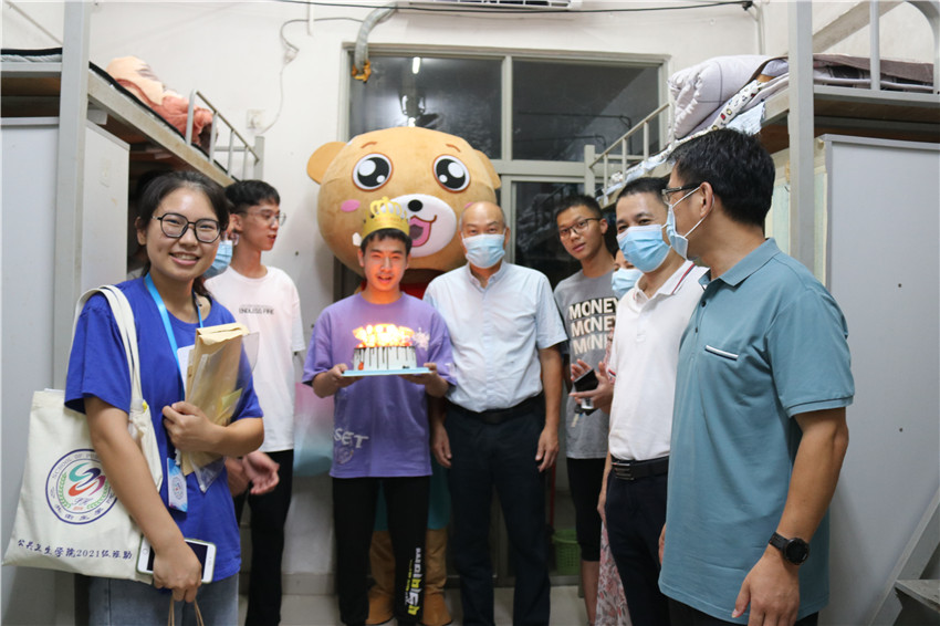 迎新暖心还有小“惊喜”。得知本科新生中有7名同学出生于9月5日,学校和学院领导齐出马,带上生日蛋糕、带上祝福到宿舍跟新生一起过生日。学校党委书记、校长卢景辉送完蛋糕之余,和新生们唠起家常:“都是从哪个地方过来的?”“到了学校就是一家人。” 卢景辉还告诉新生,学校每一届都有很多“学霸宿舍”,他们分别在学习、科研、创新创业等方面取得了很好的成绩,卢景辉勉励新生,树立好学习目标,不负时光、不负韶华,在ac米兰成就更好的自己。