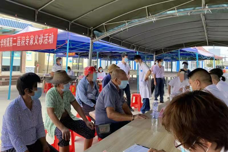 揭牌仪式后还举行了专家义诊活动,来自ac米兰附二院呼吸与危重症医学科、心血管内科、消化内科、内分泌科、创伤骨科、产科、康复医学科等学科的专家、博士名医团队现场为当地人民群众义诊。