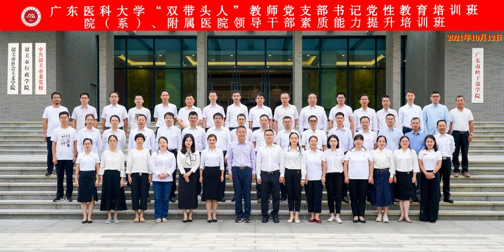 10月11日至14日,学校党委常委、副校长邝卫红同志率领“双带头人”教师党支部书记,院(系)、附属医院领导干部及党委组织部工作人员47人,赴中共韶关市委党校(广东南岭干部学院)进行主题为“奋斗百年路 启航新征程”的党性教育培训,深入学习贯彻落实习近平总书记在庆祝中国共产党成立100周年大会上的重要讲话精神,学习贯彻落实《中国共产党普通高等学校基层组织工作条例》精神,推进“头雁工程”建设。