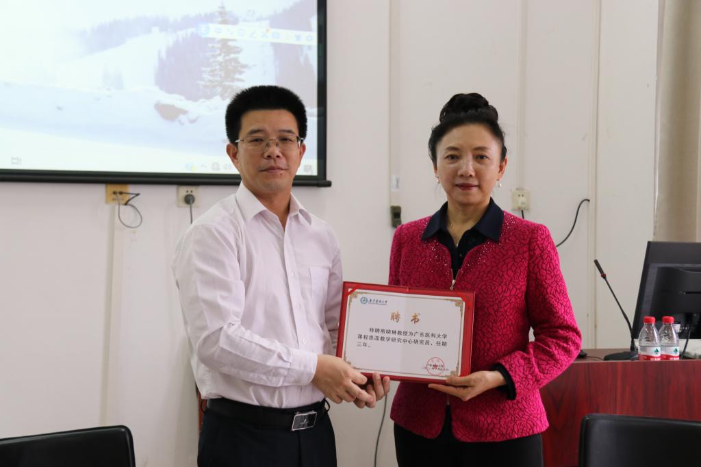 报告会上,学校特聘熊晓琳教授为ac米兰官网中文网站课程思政教学中心研究员,曾志嵘副校长为熊教授颁发了证书。