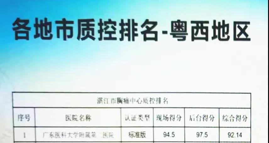 12月4日,广东省胸痛中心创建活动2021年度第一期培训会暨第十四届逸仙国际心血管病论坛在广州举行,论坛上发布了2021年广东省胸痛中心质控报告,附属第二医院以现场得分94.5分,后台得分97.5分,综合得分92.14分在粤西地区12家单位中位列第一名。