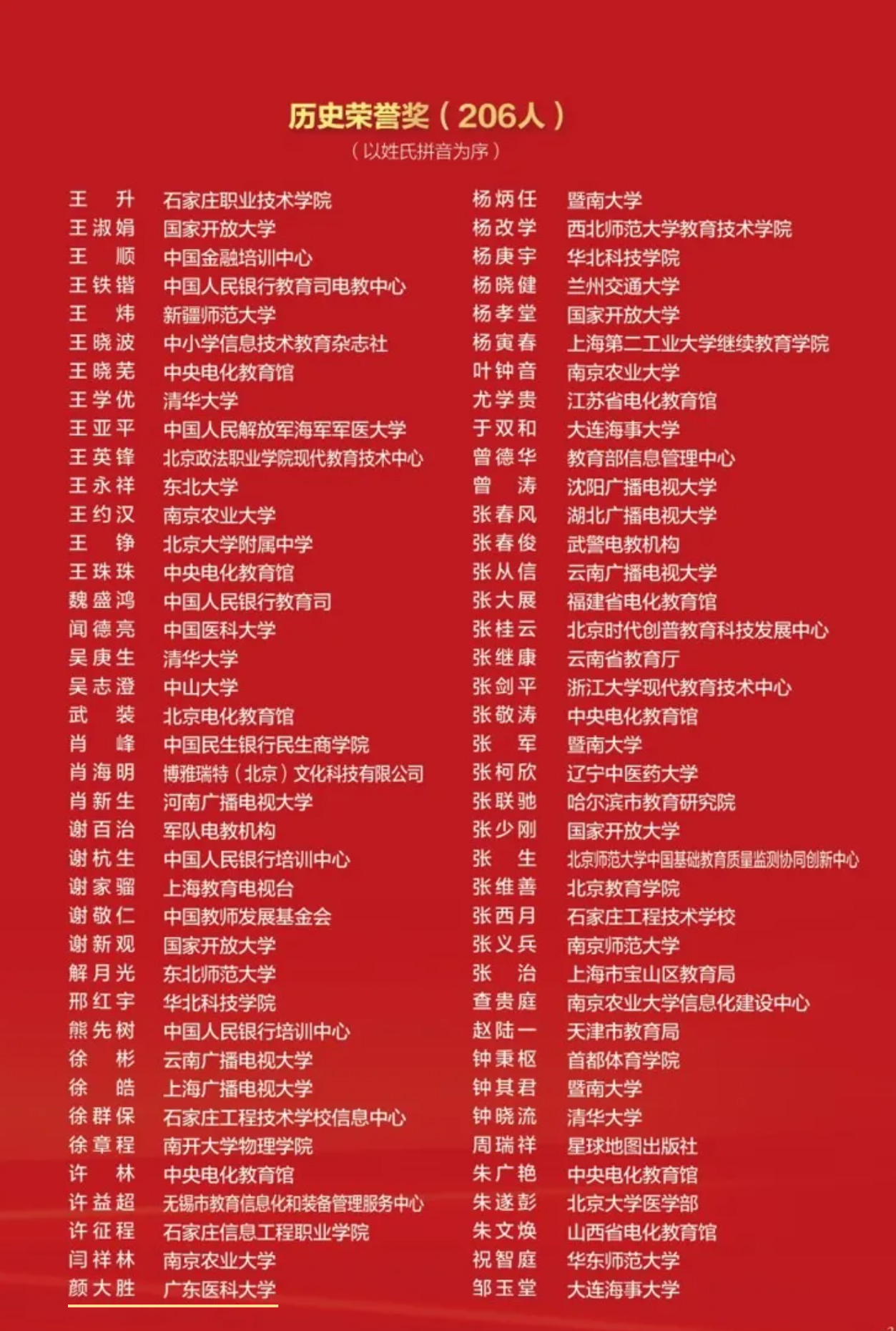 为表彰30年来协会工作先进分子、核心骨干人员不忘初心,努力为教育技术事业奋斗,并取得突出业绩的精神,激励广大会员在新的历史时期更好地做好协会工作,促进全国教育信息化发展,协会公布了一批先进集体和个人名单,包括:“历史贡献奖”8人,“历史荣誉奖”206人,“在会奉献30年纪念奖”247人,“优秀工作者奖”72人,“先进专业委员会奖”24个。ac米兰原副校长颜大胜荣获“历史荣誉奖”,教育技术与信息中心主任陈晓荣获“在会奉献30年纪念奖”。ac米兰原副校长颜大胜多年来一直从事医学教育技术的研究工作,先后历任广东省高校电教研究会副理事长,中华医学会视听教育学会广东分会副主任委员;中华医学会视听教育学会第一届理论学组成员、医学摄影学组副组长,第三、四、五届摄影学组组长,中华医学会教育技术分会委员、常委、副主任委员,候任主任委员、主任委员、前任主任委员,中国教育技术协会常委、医学专业委员会主任委员,《中国医学教育技术》杂志编委。他对医学摄影有较为完整的理论体系建树,共发表论文20多篇;先后承担广东省教育厅教育技术“五个100工程”和“五个一”工程课题项目6项,教育技术研究成果获国家级学会和省厅级教育技术奖20多项次、获广东省科技进步三等奖1项。参与整形外科临床研究,获广东省科技进步二等奖1项,湛江市重大科技进步特等奖1项,厅、局级科技成果奖4项。担任教育技术“十三五”规划教材《医学教育技术教程》副主编;应用教育技术策划开发“五位一体”成人护理本、专科立体教材48部,担任总主编;曾被评为中华医学会教育技术分会先进个人,获中国教育技术协会年度工作成就奖。