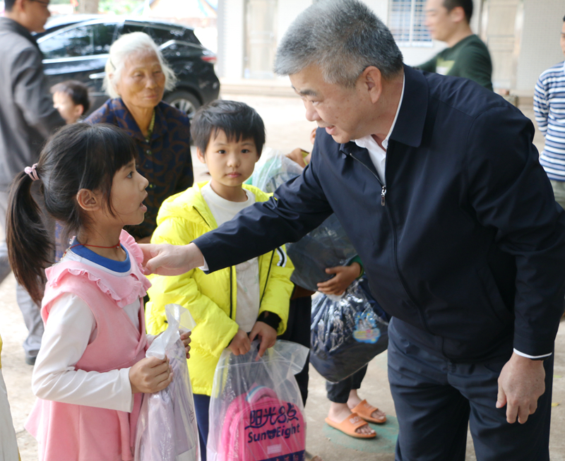 在金土村进行慰问后,罗辉特意带队来到该村的金土小学,向学生们送去了书包、笔、笔盒等学习用品,并鼓励学生们克服困难,努力学习。
