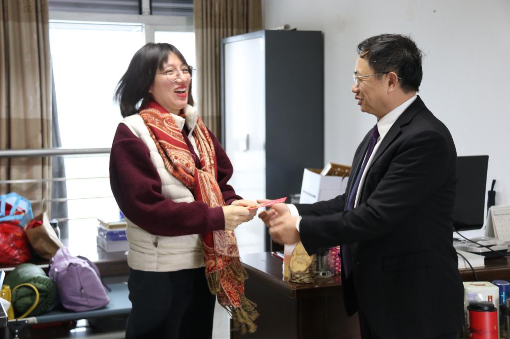一元复始,万象更新。节日里的ac米兰校园处处洋溢着欢乐、祥和的新春气息。2月1日,农历大年初一上午,校领导向献兵、刘新光携党委办公室、校长办公室、保卫处、后勤基建管理处等相关部门的同志看望春节期间在岗教职员工。并代表学校对他们的辛勤工作和无私奉献表示感谢,同时致以亲切的问候。