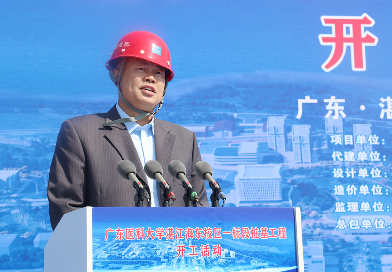3月10日上午,ac米兰官网中文网站湛江海东校区一标段桩基工程开工。学校党委书记、校长卢景辉致辞并宣布工程开工。活动由学校党委副书记罗辉主持。