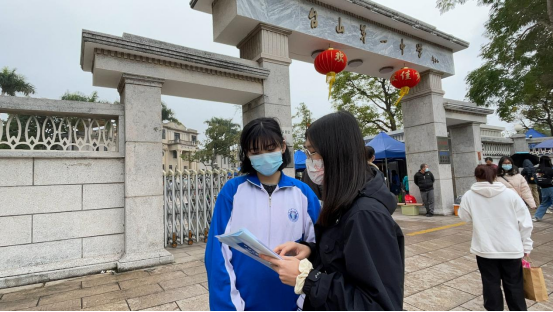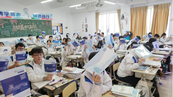 (佛山市青云中学寒招队伍进入课室发放宣传物资)