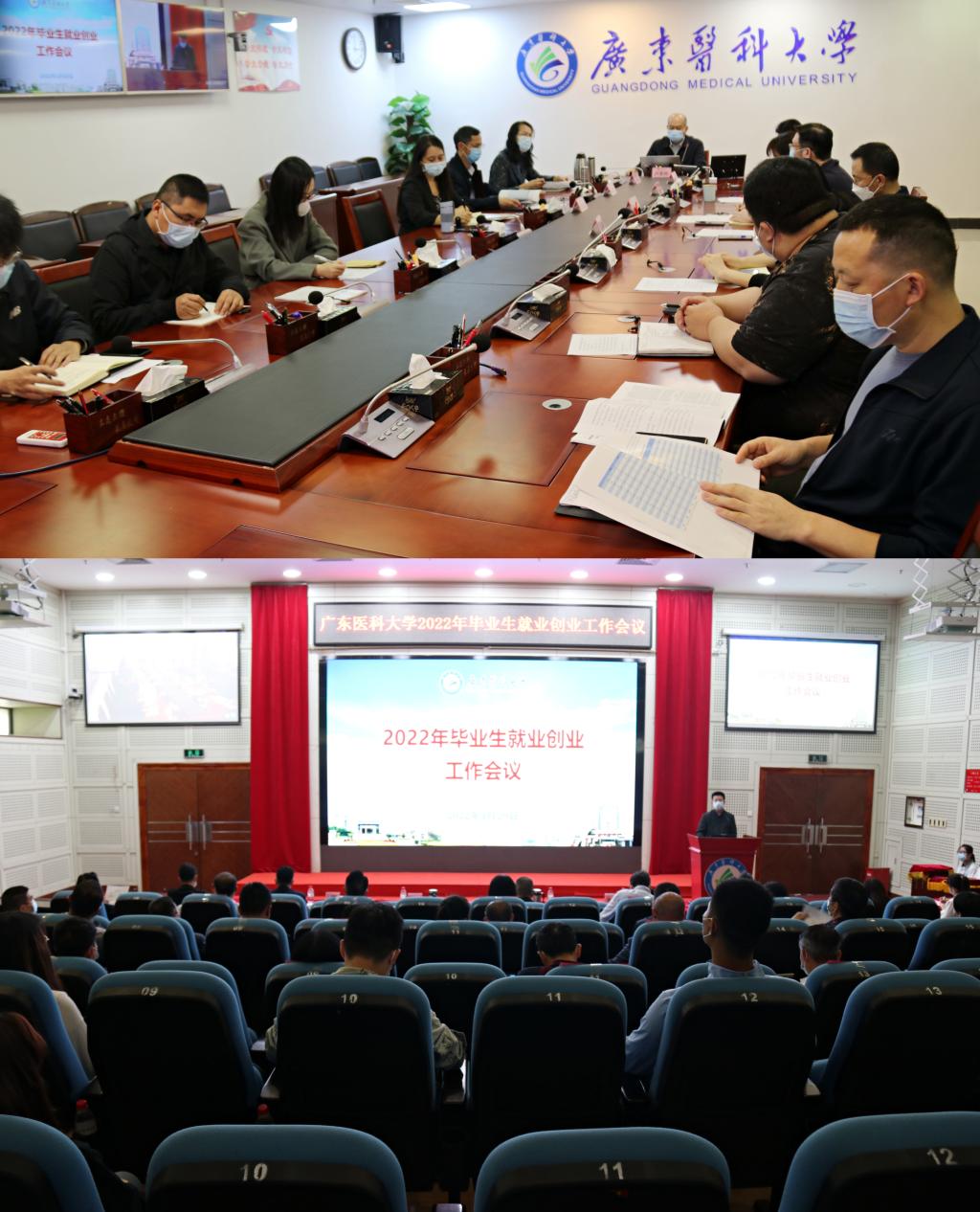 卢景辉书记校长作讲话。他指出,今年的就业工作任务艰巨,责任重大,距离2022届毕业生离校不到70天,我们要认清当前的形势和任务,迅速地将2022届毕业生就业工作落实好,落实到位,抓出成绩。卢书记校长结合近几年学校就业工作的情况提出四点意见:第一,强化担当。首先要贯彻落实习近平总书记重要讲话精神,贯彻落实党中央、国务院的决策部署,落实省委省政府的工作要求。强调以学生发展为中心,助力学生顺利就业。第二,攻坚克难。今年全国毕业生就业人数是首次突破1000万人,面对客观困难,我们要团结奋斗、解放思想、开拓创新,切实增强做好就业工作的使命感、责任感、紧迫感,采取有效措施,加大工作力度,让2022届毕业生实现更加充分、更高质量的就业。第三,拓展举措。加大宣传力度,鼓励基层就业,利用好政策性岗位。积极走出去,请进来,线上线下相结合。多与学生谈心交流,有针对性地开展思想政治工作和就业工作。第四,完成任务。各单位的党委切实加强组织领导,强化组织保障,切实担负起主体责任,把就业工作摆在更加突出的位置,把就业工作纳入到年度考核的重要内容,作为办学绩效、人才培养质量和学科建设的重要依据,坚决完成2022届高校毕业生就业工作的目标任务。
