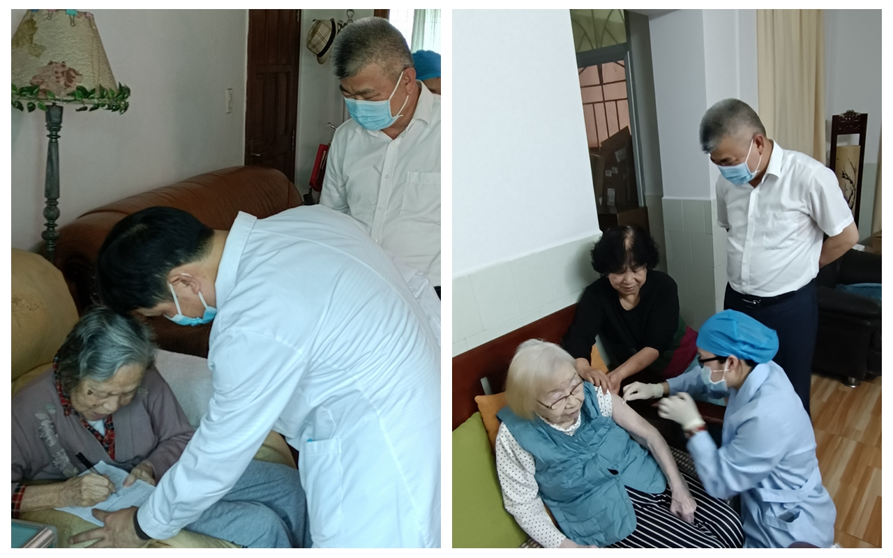 “我是一名老党员,国家有号召,我要支持。”“作为一名党员领导干部,我得给老伙计们做个榜样。”95岁的离休干部、ac米兰官网中文网站附属医院原儿科教授谢军;93岁的“中国病理事业突出贡献专家”、原副校长沈淑静;90岁的离休干部陆浩泉今天都在家中接种了新冠疫苗。