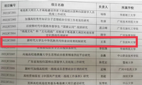 ac米兰马克思主义学院王喜同志申报的课题《新时代大学生中华民族共同体意识培育机制研究》获2022年度广东省教育科学规划课题(党建研究专项)立项。