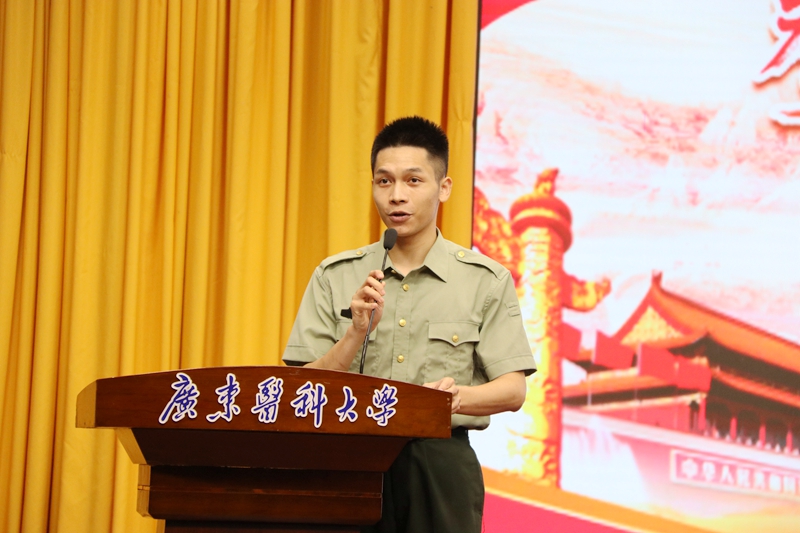 宣讲团的三位优秀退伍军人分别给大家做宣讲,退役后在广东海洋大学任教的朱剑老师罗列了参军入伍的“十大收获”,退伍复学的湛江科技学院学生林珑珑讲述了自己在军营中如何从“温室里的花朵蜕变为铿锵玫瑰”的成长经历,同为退伍复学的第一临床医学院学生稳国立分享了曾经迷茫的懵懂少年“代父圆从军梦”,经过部队的锤炼从而明确人生目标树立了远大理想的心路历程。