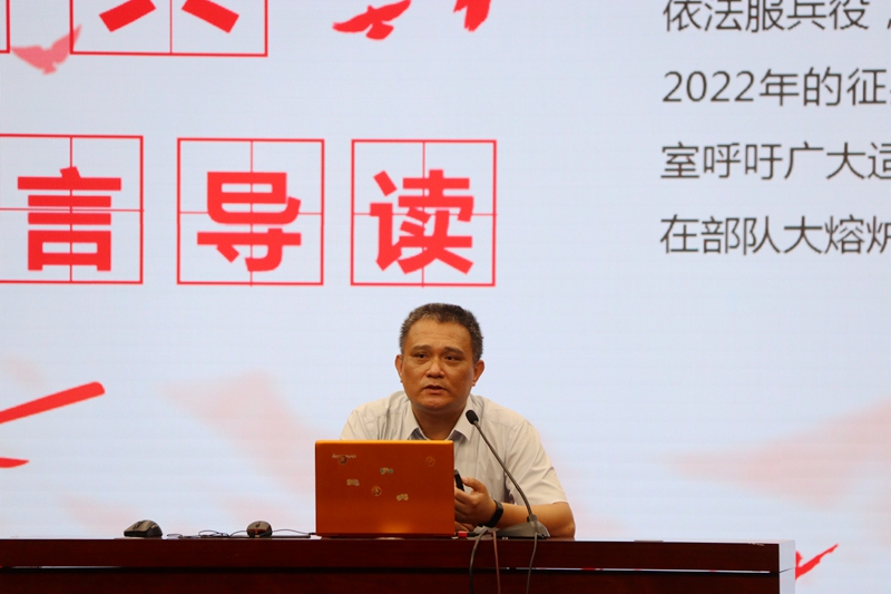 为加强征兵政策宣传,进一步贯彻落实国家大学生征兵入伍政策,激发大学生参军入伍热情,鼓励和引导在校大学生积极参与应征入伍,ac米兰于6月9日晚在湛江校区新教学楼9楼报告厅隆重举行了ac米兰官网中文网站2022年征兵宣传暨国防教育活动。