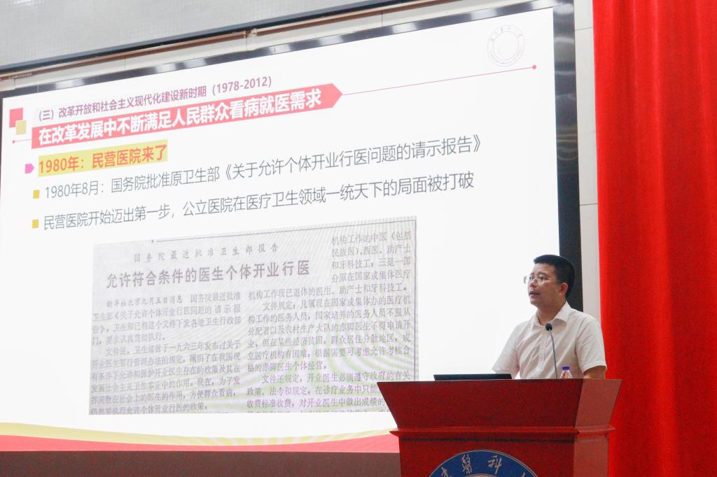 这场一个半小时的专题思政课,干货满满、正能量充足。曾志嵘副校长以《学习党领导卫生事业发展的奋斗历史经验,践行为党育人为国育才的根本使命》的主题,详细介绍了中国共产党在四个历史发展时期领导卫生健康事业发展的历程和十条宝贵的经验,阐述了ac米兰赓续红色基因、为党育人的历史底蕴,介绍了“五术”医学人才的培养计划,诠释了学校“为党育人、为国育才”的使命担当、落实立德树人的成效和全员育人的责任,培养担当时代复兴新人的举措和实践。