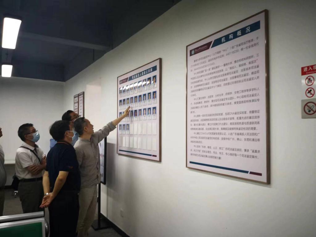 为认真贯彻落实习近平总书记关于教育和卫生健康的重要论述,助力资产公司和司法鉴定中心发展,8月24日学校副校长刘新光、湛江广医资产经营有限公司董事长黄喆、司法鉴定中心主任唐剑频等组成调研考察组一行7人,赴暨南大学司法鉴定中心考察调研。暨南大学司法鉴定中心主任杨于拙、常务副主任刘庆浪、办公室主任容瑞虹等多名专业科室鉴定专家陪同调研。