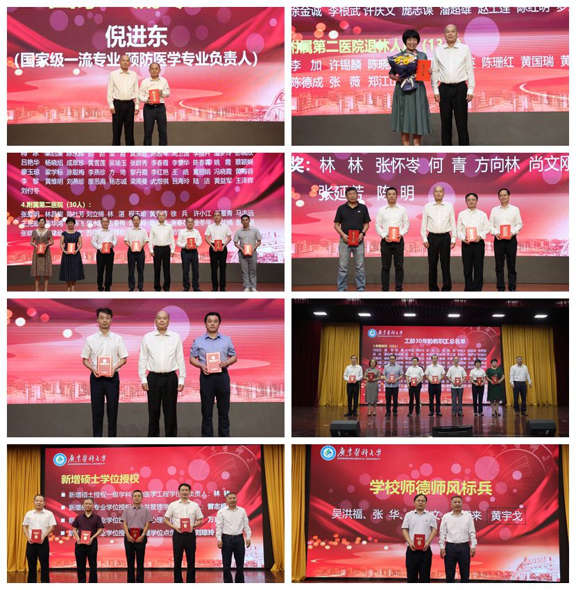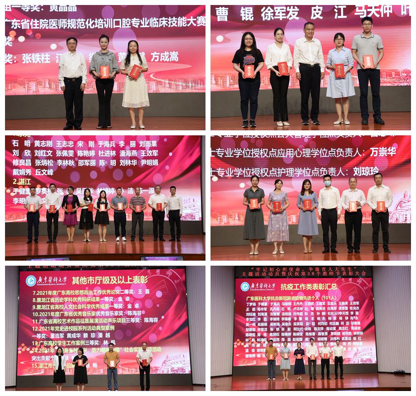 大会表彰了工龄30周年的教职工,获得省高等教育教学成果奖国家、省级一流课程、一流专业、省级一流课程思政的团队和先进个人,国家、省自然科学基金获得者,省联合基金获得者,表彰了在疫情防控方面、教育教学方面、科学研究方面、指导学生比赛方面等荣获国家、省级表彰的教职工。