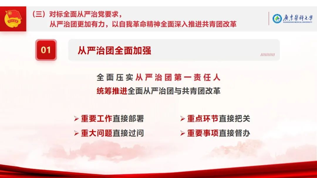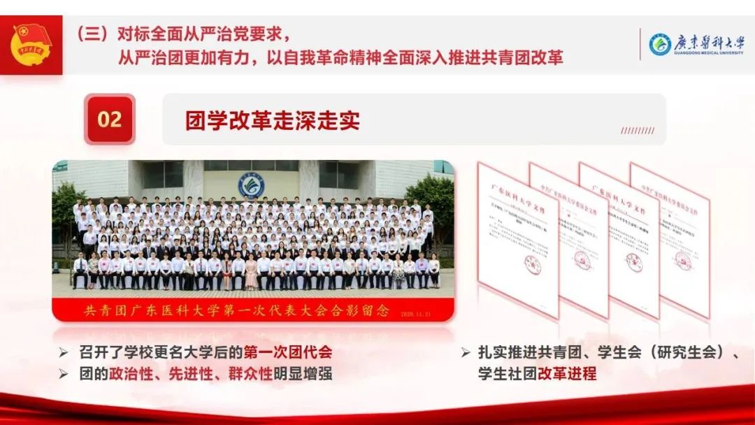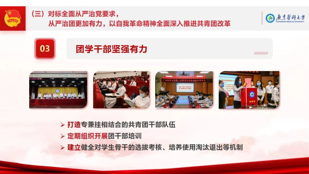 对标全面从严治党要求,从严治团更加有力,以自我革命精神全面深入推进共青团改革。
