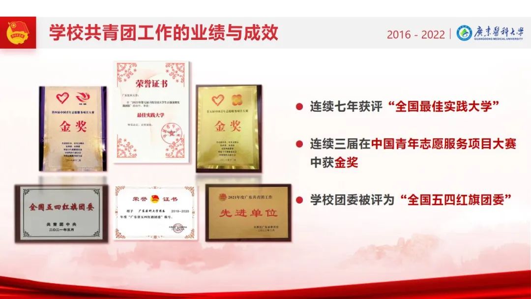 卢景辉表示,近年来,学校党委深入学习贯彻习近平新时代中国特色社会主义思想,始终关心和重视青年工作,始终关注和支持学校共青团工作,坚持党管青年,坚持立德树人,坚持为党育人,着力强化对共青团的政治领导、思想领导、组织领导,开创了学校青年工作和共青团工作新局面。学校各级共青团组织,坚持党的领导,坚持服务大局,坚持守正创新,着力在思想引领、组织建设、实践育人、管团治团等方面下功夫,不断提高做好青年工作的能力和水平,学校连续7年获评“全国最佳实践大学”,连续三届在中国青年志愿服务项目大赛中获金奖,四获全国大中专学生志愿者暑期“三下乡”社会实践活动优秀单位,学校团委被团中央授予“全国五四红旗团委”称号等,学校共青团工作为学校改革发展稳定做出了积极贡献,书写了新时期学校共青团事业的亮丽答卷。