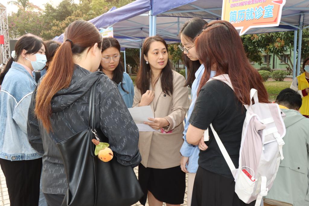 招聘会现场设置了“简历就诊室”,第一临床医学院的老师们现场为同学们指导优化个人简历,对应聘相关岗位进行策划并提出相应建议,全力支持学生以最佳的状态参与本次专场招聘会。
