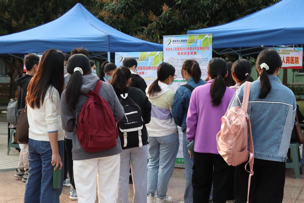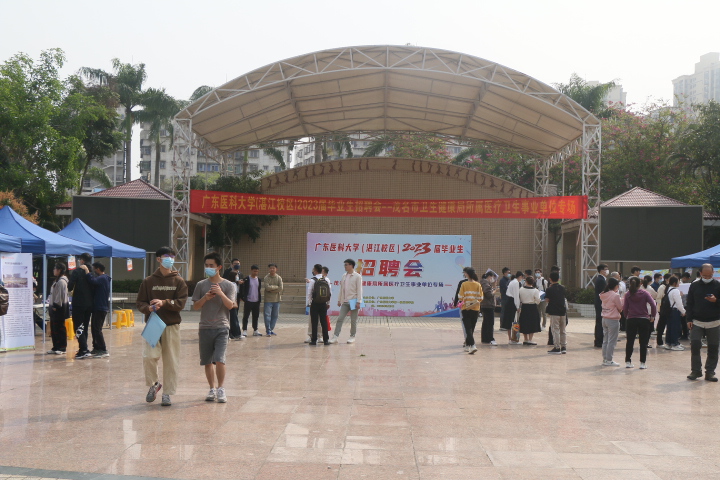 本次校园专场招聘会吸引了众多校内外、不同地区和学校的应聘者。有来自安徽医科大学、广西中医药大学等省外院校的应届毕业生从广东省人社厅官网了解到招聘会信息,特意来到湛江校区,希望在这里找到适合自己的工作岗位。