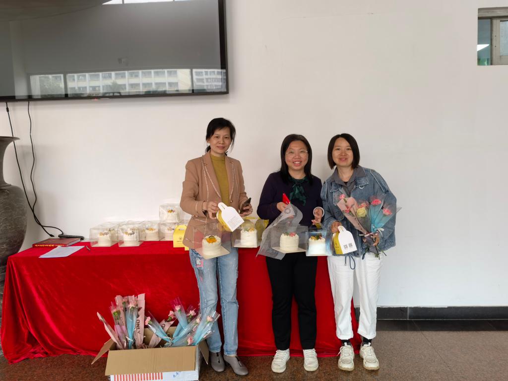 湛江校区机关工会分会举行“党群连心 快乐巾帼”活动,为湛江校区机关工会分会全体女职工送去节日问候。一支精心准备的献花,一块蕴含祝福的甜蜜蛋糕,表达着对女职工们的关怀和美好的祝愿。