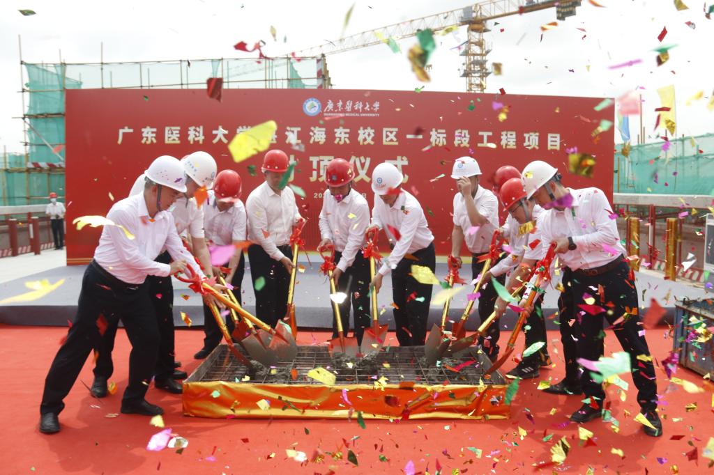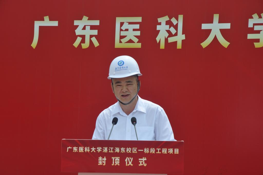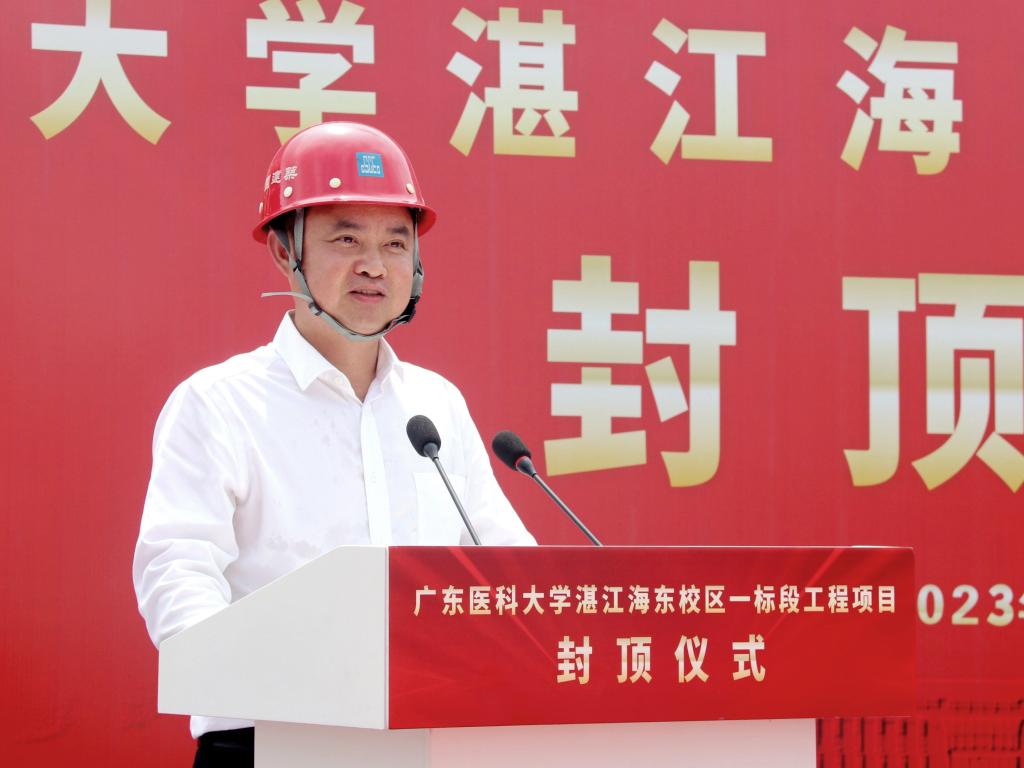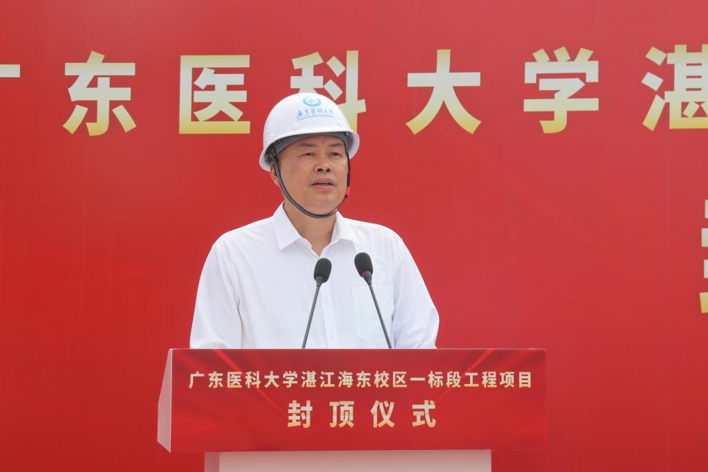 卢景辉代表学校向奋战在海东校区建设一线的建设者表示诚挚的感谢,向一直以来关心、支持学校发展建设的湛江市委、市政府和社会各界表示由衷的敬意,向一期一标段的顺利封顶表示热烈的祝贺。他表示,海东校区一标段工程顺利封顶,是献给学校65周年校庆的一份“厚礼”。学校将持续加强人才资源、平台服务、临床诊疗、成果创新等优势和力量,全力建强作为国家省级区域医疗中心的附属医院,全力建好作为湛江应急医院的附属第二医院。他强调,站在新的历史起点,ac米兰官网中文网站将深入学习贯彻党的二十大精神和习近平总书记视察广东重要讲话重要指示精神。加快构建新发展格局,坚定“以社会服务为己任”的办学理念,坚定不移以特色发展、创新发展、内涵式高质量发展,持续推进学校实现更高质量发展,全力服务湛江全力建设省域副中心城市、加快打造现代化沿海经济带重要发展极,在湛江跨越式高质量发展中贡献ac米兰的智慧和力量。