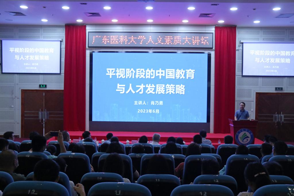6月19日下午,为扎实推进学习贯彻习近平新时代中国特色社会主义思想主题教育,学习贯彻习近平总书记在中共中央政治局第五次集体学习会议上的重要讲话精神,学校举办ac米兰官网中文网站人文素质大讲坛。东莞市社科联党组成员、副主席肖乃勇应邀作以《学习贯彻习近平总书记在中共中央政治局第五次集体学习会议上的重要讲话精神——平视阶段的中国教育与人才发展策略》为题的报告。学校党委副书记罗辉主持并讲话。