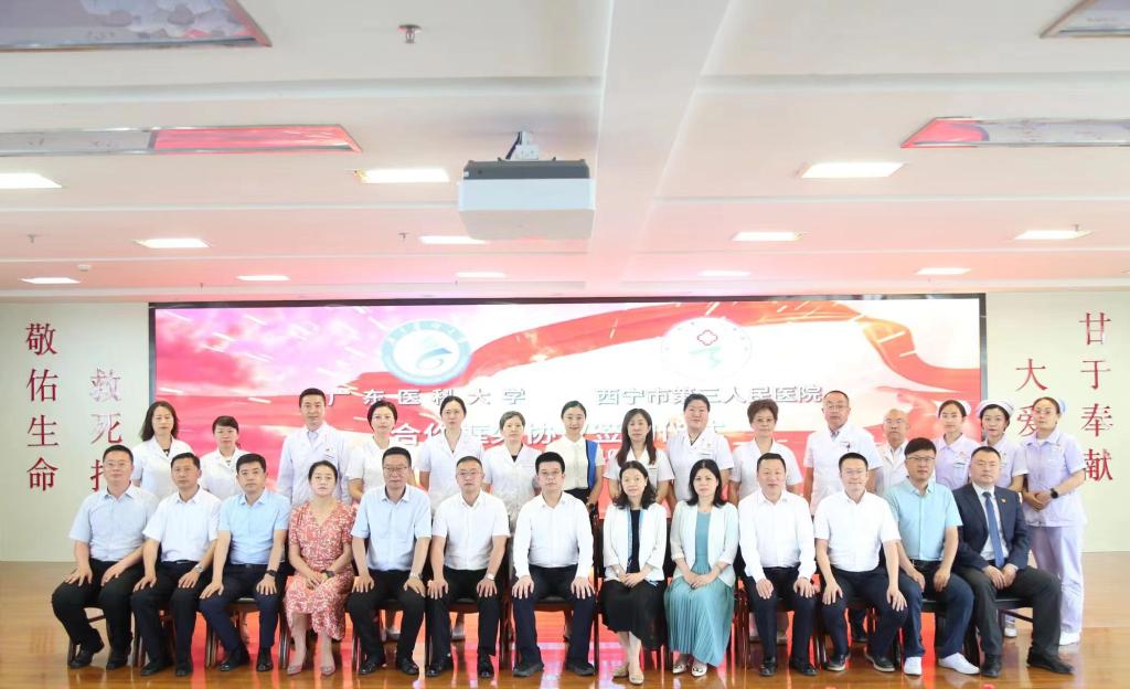 仲夏西宁,秀水泱泱,鹤翔云天;青海湖畔,群贤毕至,携手共赢。在全党深入开展学习贯彻习近平新时代中国特色社会主义思想主题教育之际,7月10日在青海省委组织部、西宁市政府的高度重视与组织推动下,学校与西宁市第三人民医院合作交流框架协议签约仪式在西宁市隆重举行。省委人才办人才工作一处副处长江龙飞,西宁市委组织部人才办主任乜旭东,西宁市卫健委四级调研员、医政科科长袁歆红;第23批来青博士服务团成员青海省人民医院挂职副院长刘家祎、挂职青海省心脑血管病专科医院副院长侯剑峰等领导出席签约仪式。西宁市第三人民医院党政领导、中层干部和百余名医护代表参加活动共同见证签约。学校党委常委、副校长曾志嵘,党委常委、党委组织部部长谭平,相关直属附属医院单位、部门负责人出席会议。会议由西宁市第三人民医院党委书记陈勇同志主持。