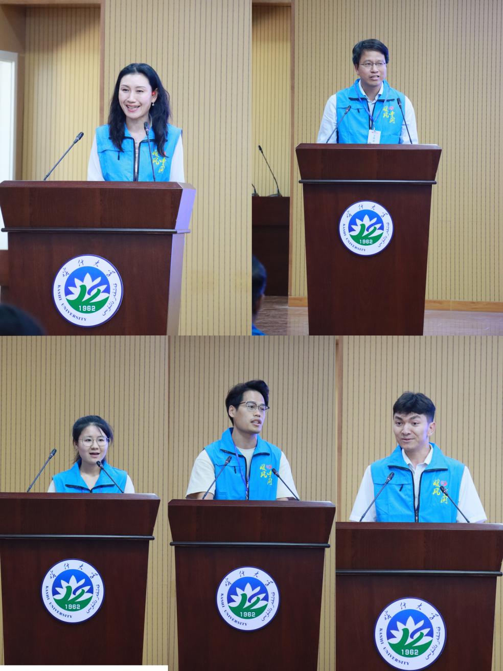 ac米兰官网中文网站学生志愿服务团队队长郭珊珊同学、南方医科大学学生志愿服务团队队长陈琨灵同学和喀什大学医学院学生志愿服务团队代表伊尔潘同学也分别发言。