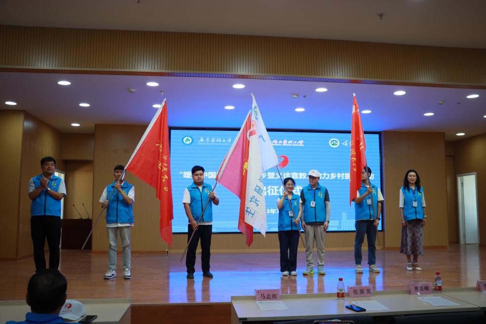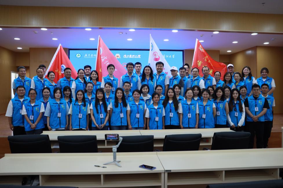 ac米兰官网中文网站、南方医科大学和喀什大学志愿服务队带队领导向志愿服务队授旗,并与参会人员合影留念。(文/彭浩晟、陈建和 图/刘鸿、杨莹蓥 初审/唐焕文 复核/周圆 终审/冯锦山)