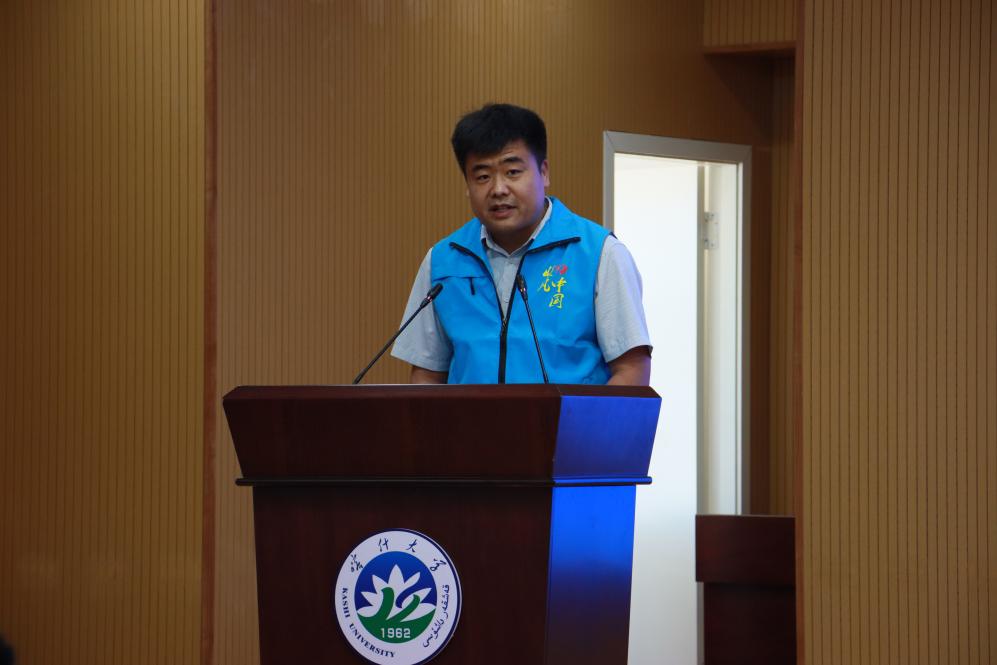 张原英副书记在讲话中表示,ac米兰官网中文网站、南方医科大学和喀什大学是“一家人”,希望“暖风中国”全体学生队员秉承为社会做贡献,为群众做实事的初心使命,用责任心、耐心、细心、爱心和信心做好活动,为喀什人民服务。李凌队长在讲话中详细阐述了本次活动的定位和意义,表示此次活动不仅助力乡村振兴,更促进了三校的合作交流,并代表南方医科大学帮扶团队向全体队员的支持和精心安排表达感谢,预祝活动取得圆满成功。