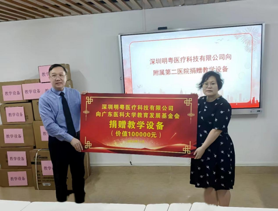 10月24日下午,深圳明粤医疗科技有限公司(以下简称“明粤医疗”)向学校教育发展基金会捐赠眼视光学教学设备仪式在学校附属第二医院临床技能培训中心举行。