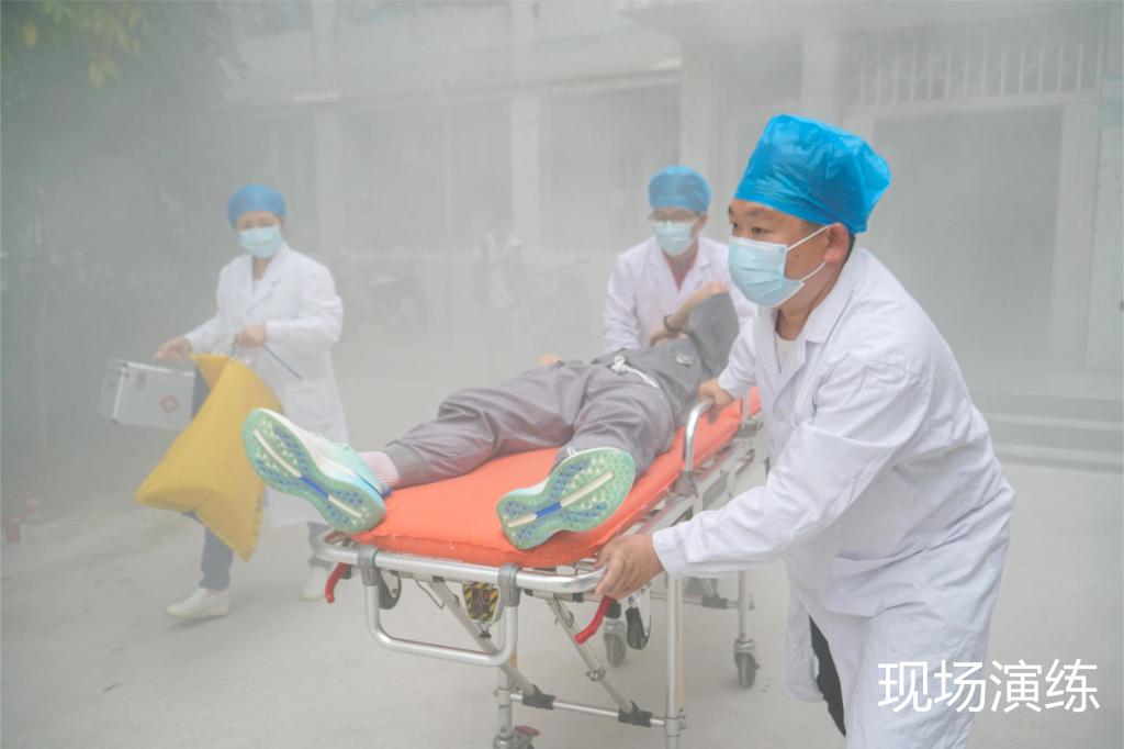 他们还对受伤人员进行治疗,展示止血、包扎、固定、搬运、心肺复苏等急救基本技术,同时安排120救护车立即将重症者送往医院抢救。