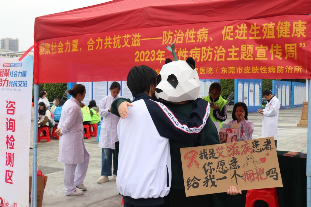 现场开展了艾防咨询、义诊、宣传展板展示、健康咨询检测、有奖互动、志愿者倡议等活动,吸引了来自东莞市各参会单位的100多名代表以及本校的师生参加。