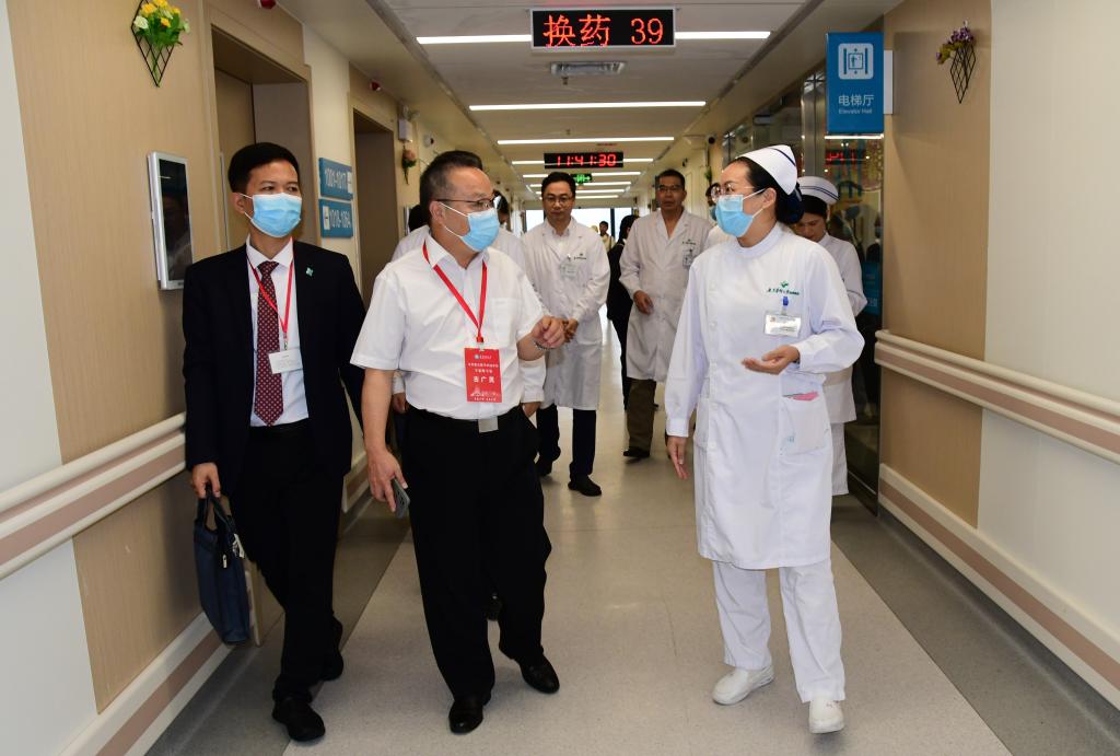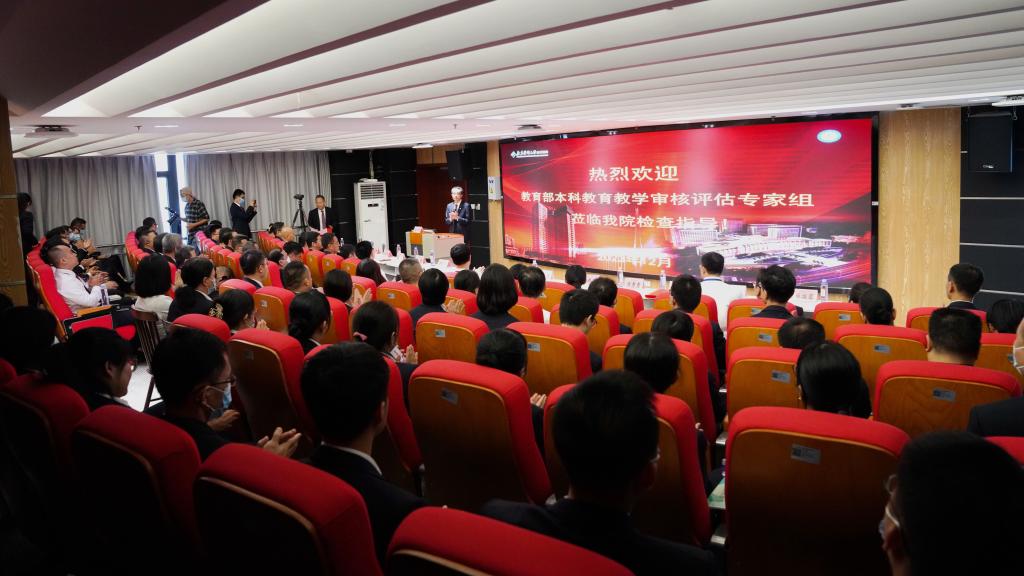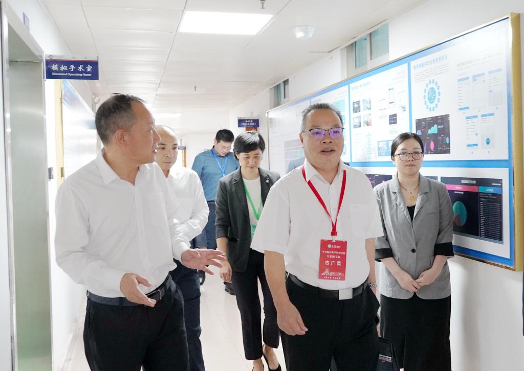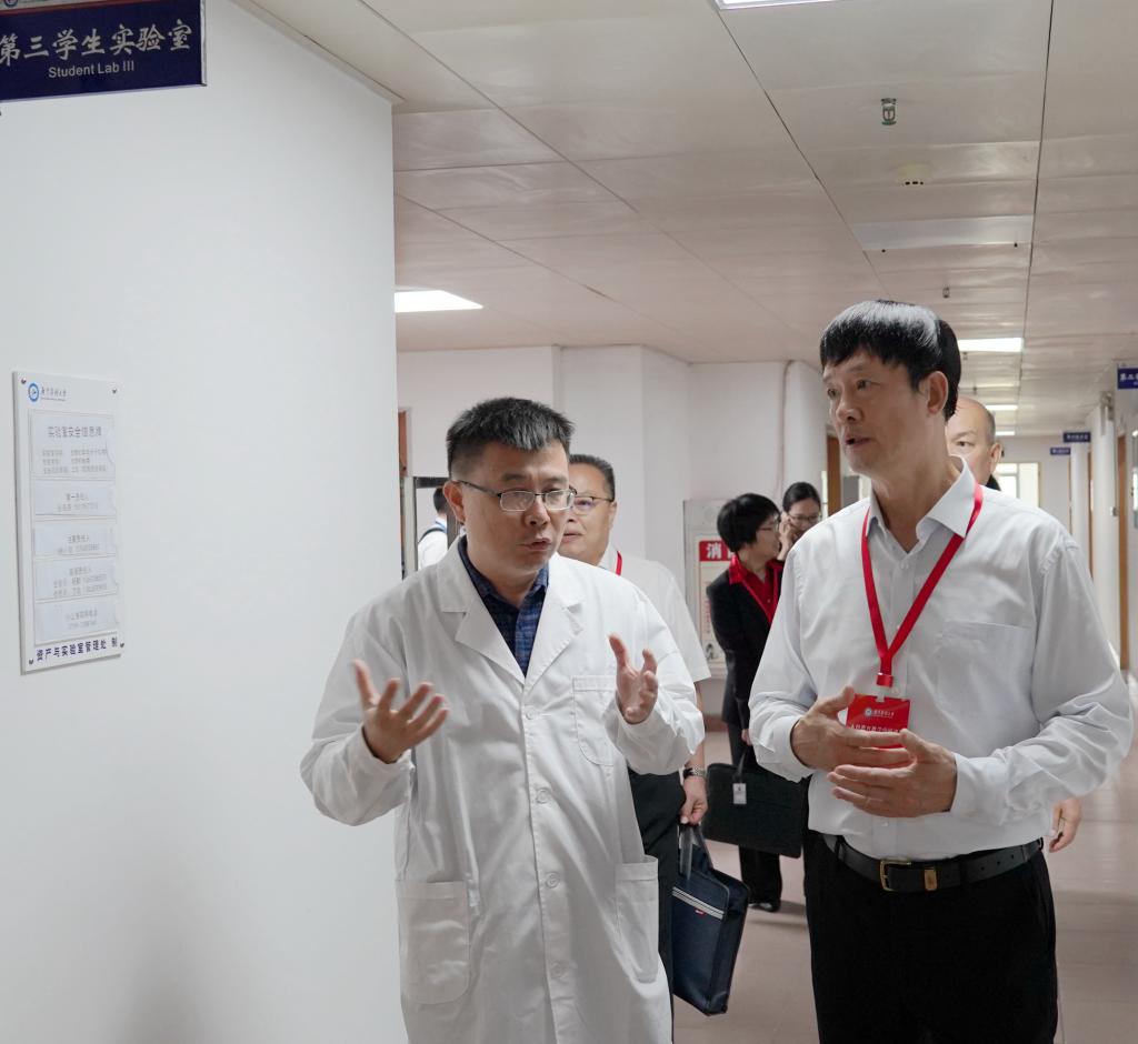 专家组集体考察了学校校史馆、生化实验室、立仁书院、海洋医药研究院、附属医院。校领导卢景辉、刘新光、曾志嵘,各职能部门主要负责人陪同考察。