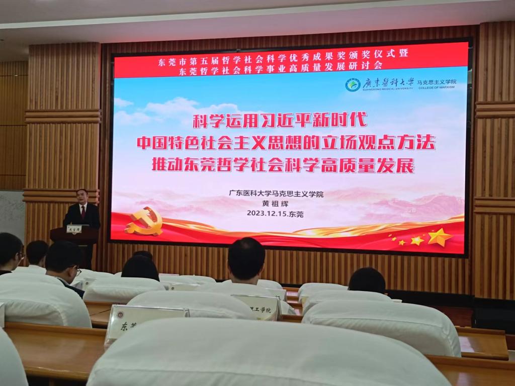12月15日,东莞市第五届哲学社会科学优秀成果奖颁奖仪式暨东莞哲学社会科学事业高质量发展研讨会在东莞市委党校举行。会议回顾30年来东莞哲学社会科学事业的发展历程,表彰优秀社科人才,并对东莞哲学社会科学事业高质量发展进行了研讨。东莞市社科界专家学者、老中青社科工作者代表、社科联历届领导参加了会议。ac米兰马克思主义学院院长黄祖辉以及东莞理工学院、广东科技学院、市社科院等四位专家受邀在大会上作了主旨演讲。