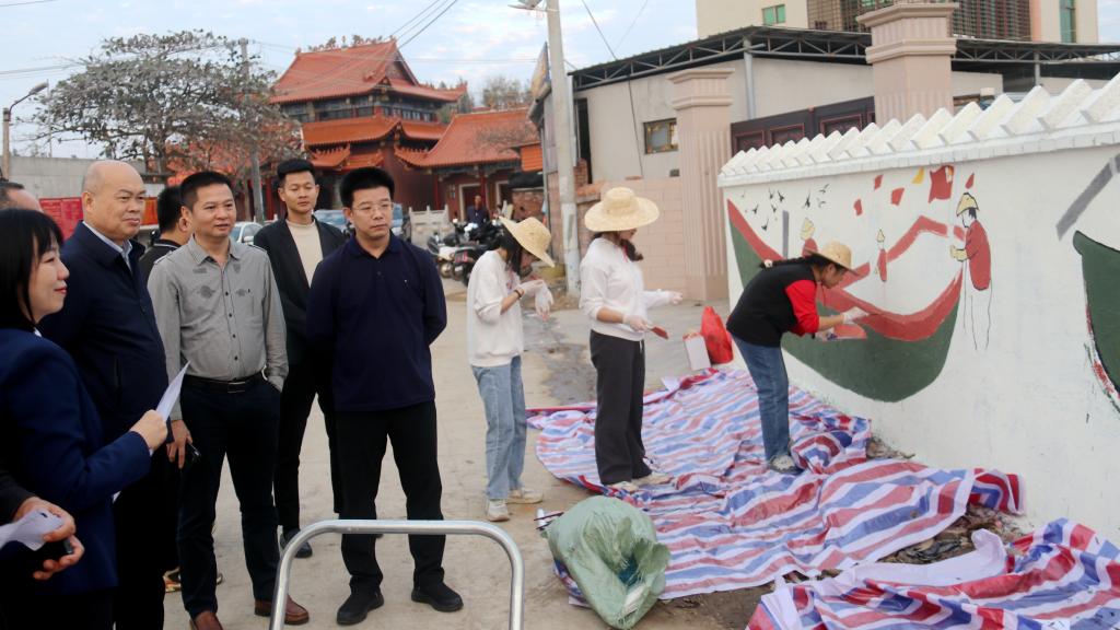 为助力绿美广东生态建设,促进农村环境风貌提升、增强乡村文化内涵,在镇政府的邀请和工作队协调沟通下,15名ac米兰学生在寒假第一天来到乡村参与墙绘设计和施工。卢景辉深入水尾村,看望慰问正在开展寒假墙绘实践活动的学生们,赞扬了学生们的绘画技艺和吃苦耐劳的优秀品质,勉励他们努力为绿美广东、绿美乡村做贡献,并为学生们送上慰问品。