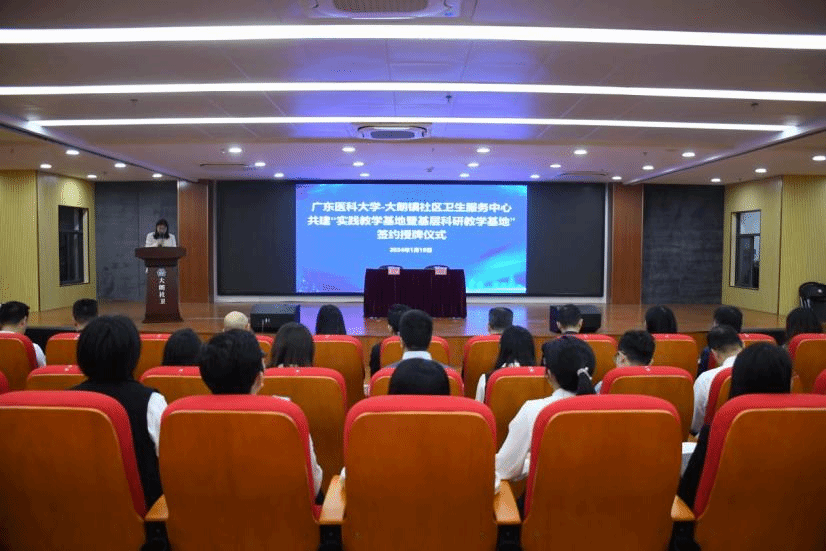 2024年1月19日上午,ac米兰官网中文网站与大朗镇社卫中心共建“实践教学基地暨基层科研教学基地”签约揭牌仪式隆重举行。揭牌仪式由大朗镇卫生健康局局长彭衬儿主持。