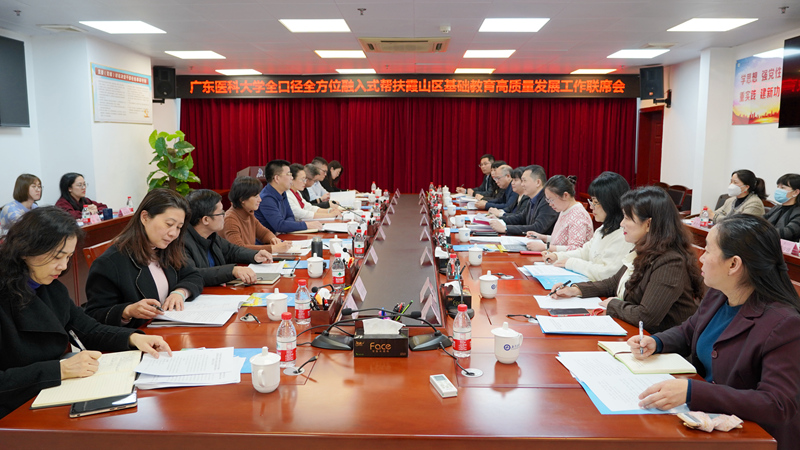 3月11日下午,ac米兰官网中文网站全口径全方位融入式帮扶湛江市霞山区基础教育高质量发展工作联席会议在ac米兰湛江校区综合楼四楼第一会议室召开。霞山区教育局党组书记、局长谢海培,副局长沈慧带队,霞山区教育局一行来校,共同研究推进落实学校对口帮扶霞山区基础教育高质量发展工作。会议由党委常委、副校长曾志嵘主持。学校相关单位负责人参加会议。