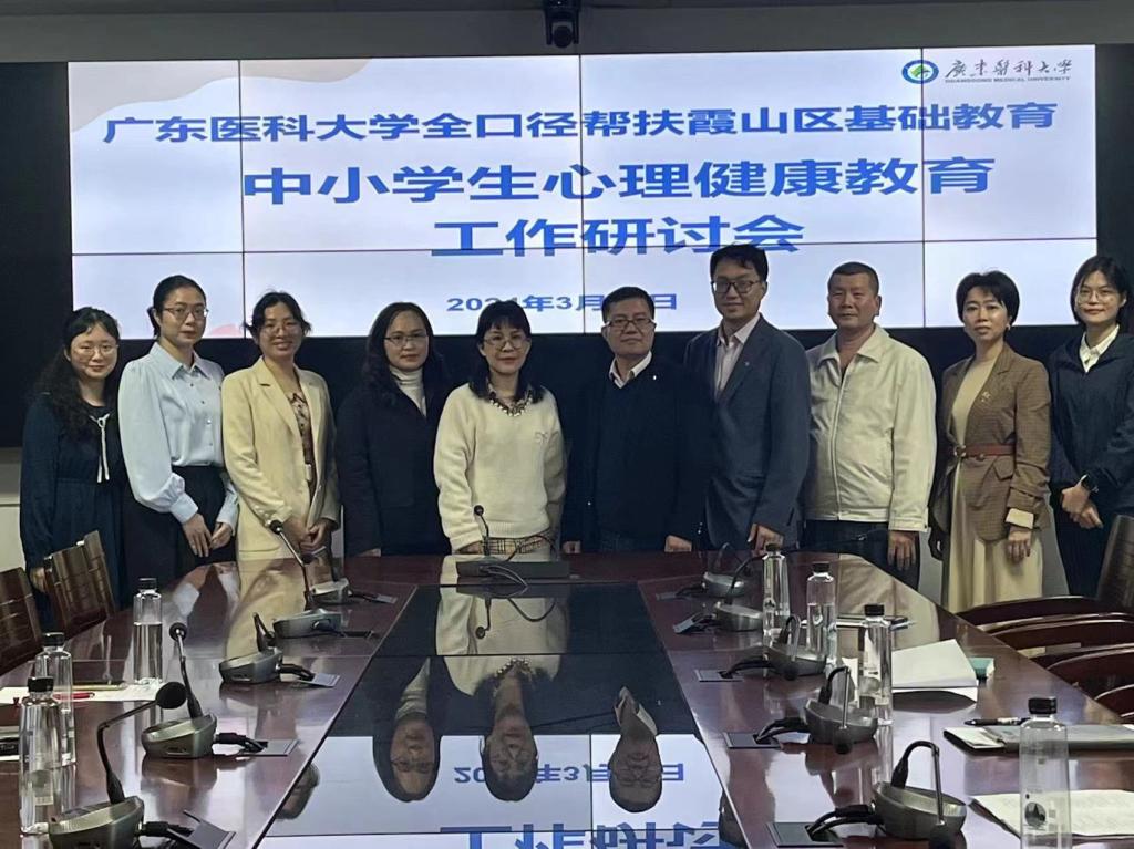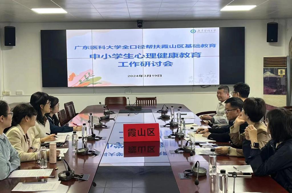 为深入贯彻落实《广东省教育厅关于做好全口径全方位融入式帮扶粤东粤西粤北地区基础教育高质量发展工作的通知》要求,3月20日下午,ac米兰官网中文网站全口径全方位融入式帮扶霞山区基础教育中小学生心理健康教育工作研讨会在湛江市霞山区教育局9楼2号会议室举行,ac米兰学工部、心理健康教育与咨询中心、海洋与热带医学学院、附属医院心理科、内分泌科等有关人员,霞山区教育局德育股、霞山区中小学心理教师骨干代表参加活动。活动由ac米兰学工部副部长陈晓光主持。