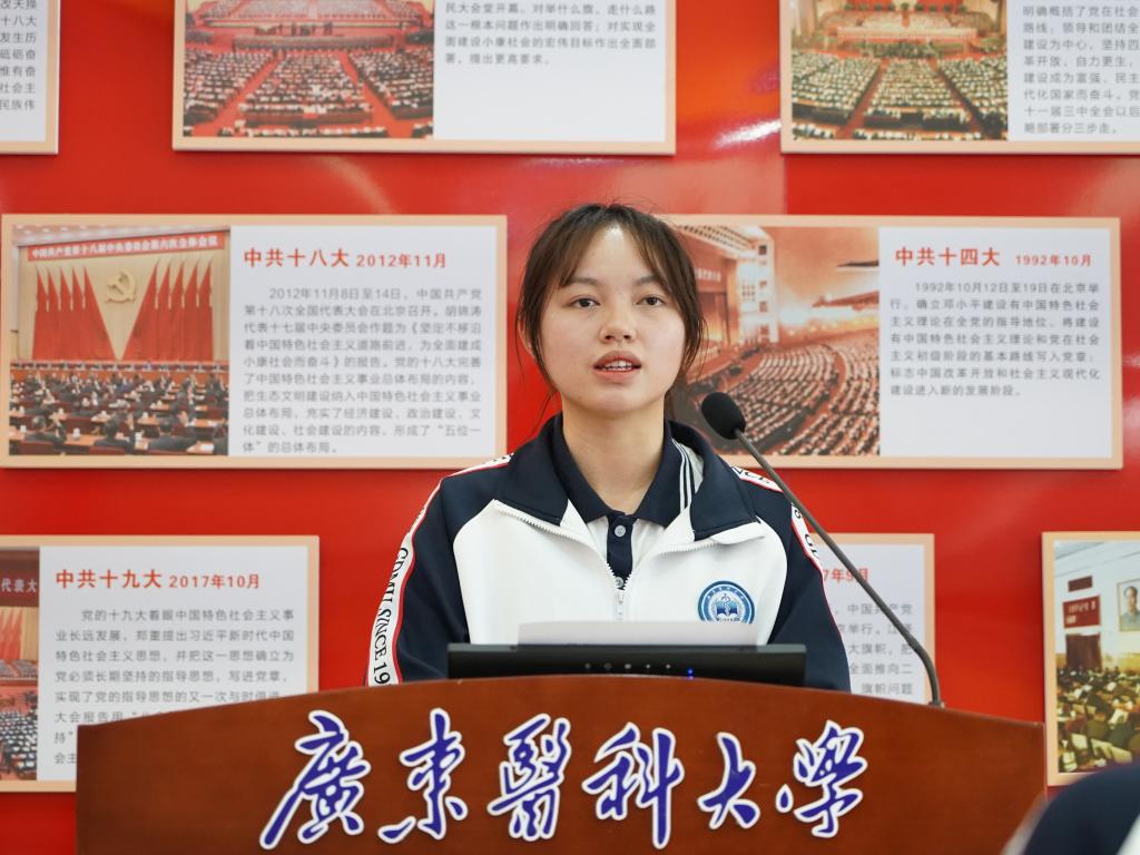 张婉晴作为退役军人代表发言,她表示:“作为学校的一份子,我深感自己的成长与学校的发展息息相关,作为一名退役复学的学生,我深知军人的使命与担当,更明白要将这种精神内化于心、外化于行。在学校的精心培养下,我不仅学到了丰富的专业知识,更学会了如何成为一个有担当、有社会责任感的医学生。我也将继续坚定历史自信,增强历史主动,以更加饱满的热情和更加坚定的信念,为学校的发展贡献自己的青春力量。”